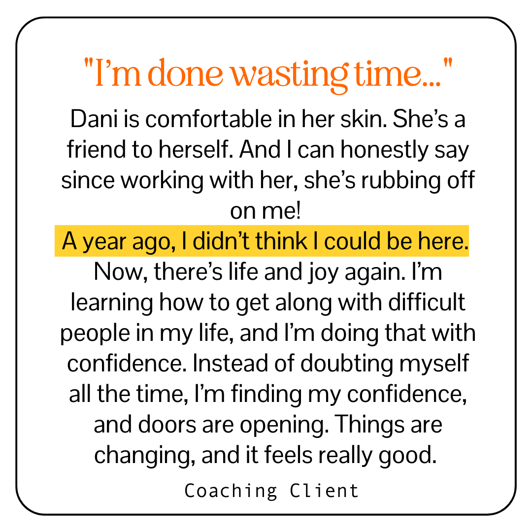 "I’ve done so much therapy and self-development, but this is the first time I feel safe enough to stop hiding and actually be seen. Dani is helping me find my authentic self, and actually enjoy being me and my life."